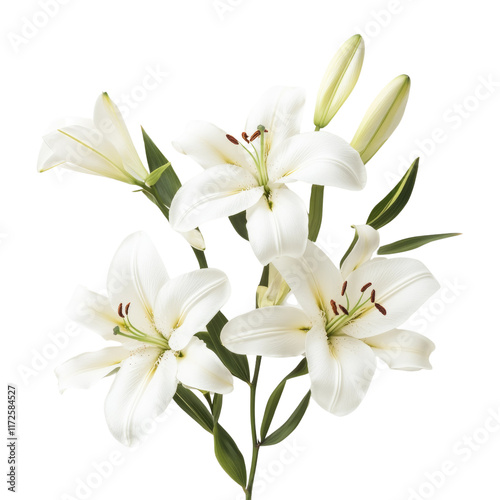 © savittree, Naklejka premium Elegant White Lilies Bouquet with Fresh Green Leaves Arrangement