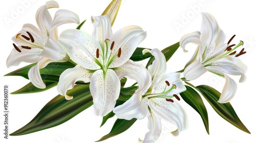 © Lancar, Fototapeta premium Elegant White Lilies with Green Foliage
