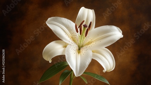 © Creative_art, Fototapeta premium Elegant White Lily Against a Warm Brown Backdrop - Perfect for Floral Decor
