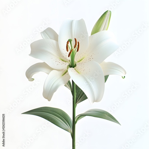 Naklejka premium Elegant white lily blossom on bright backdrop expressing purity