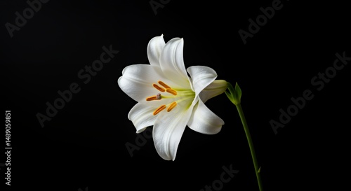© Grosir, Fototapeta premium Elegant White Lily Blossom with Detailed Pollen on Striking Black Backdrop