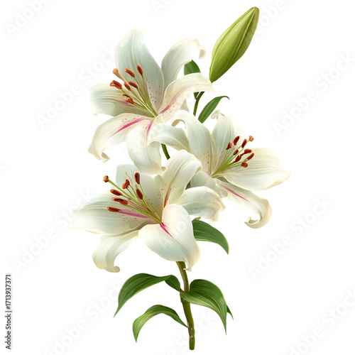 © Mr, Fototapeta premium Elegant white lily flower isolated on transparent background, a symbol of purity and beauty isolated on a transparent background
