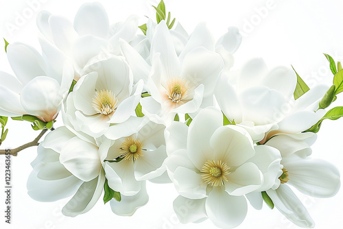 © Photo_hub, Obraz premium Elegant white magnolia flowers in full bloom on a branch.