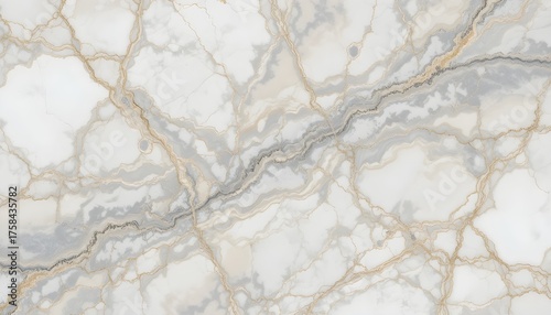 Obraz premium Elegant White Marble Texture with Natural Gray and Gold Veins, Luxury Polished Stone Surface for Interior Design, Backgrounds, Wall Tiles, and Floor Decoration