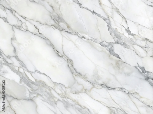 © Supittra, Obraz premium Elegant white marble texture with subtle gray veining, creating a sophisticated and luxurious background perfect for