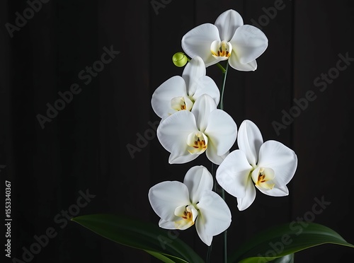 Obraz premium Elegant White Orchid: A cluster of pristine white orchid blossoms, exuding...