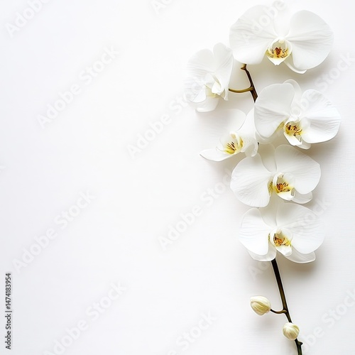 Obraz premium Elegant white orchid arrangement against a pristine white backdrop. Delicate...