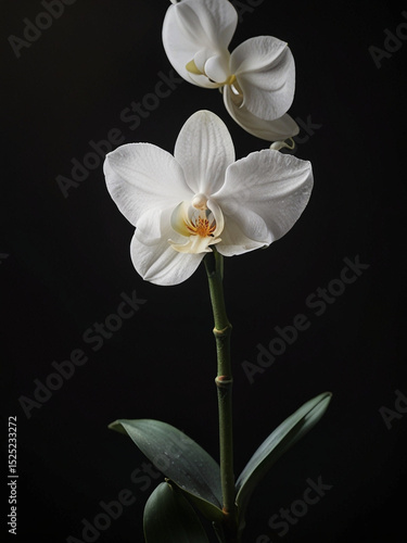 Fototapeta premium Elegant White Orchid in Dramatic Lighting Against Black Background –...