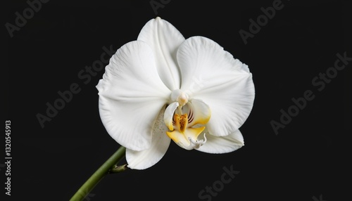 © Alena, Naklejka premium Elegant white orchid in full bloom against a dramatic black background