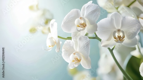 Fototapeta premium Elegant white orchids in soft natural lighting create a serene and tranquil...