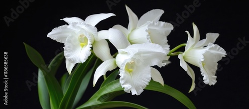Obraz premium Elegant white orchids with rich green leaves ideal for indoor gardens and...