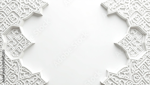 © ashiyanaja, Fototapeta premium Elegant White Paper Cut Islamic Frame with Ornate Geometric Design for Ramadan.
