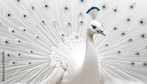 Obraz premium Elegant White Peacock Displaying Its Splendid Feathers