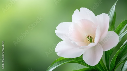 Obraz premium Elegant white peony blossom with light green background shown closely