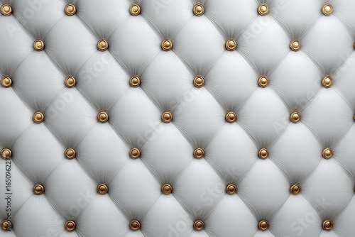 © Fadiya, Fototapeta premium Elegant, white quilted fabric with gold studs