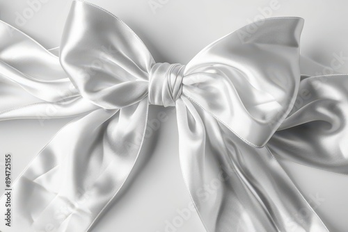 © Suphakorn, Naklejka premium Elegant white satin bow with luxurious, shiny texture perfect for gift wrapping, decorations, and special occasions.