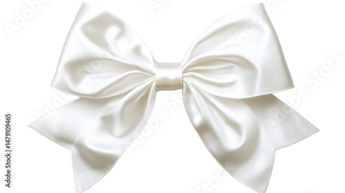 © Muhammad, Naklejka premium elegant white satin bow with symmetrical loop on white background