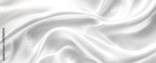 © Shahida, Obraz premium Elegant White Satin Fabric Waves Abstract Background, Smooth Textile Material Texture