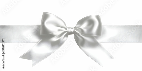 Naklejka premium Elegant White Satin Ribbon Bow Illustration, Tied Beautifully on a Horizontal...