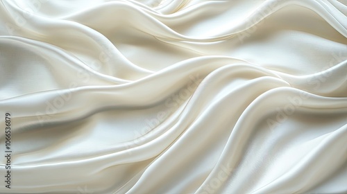 © Nijat, Obraz premium Elegant white silk fabric background with a soft flow and graceful wave, perfect for adding a touch of sophistication to your designs. Includes ample copy space for creative use.