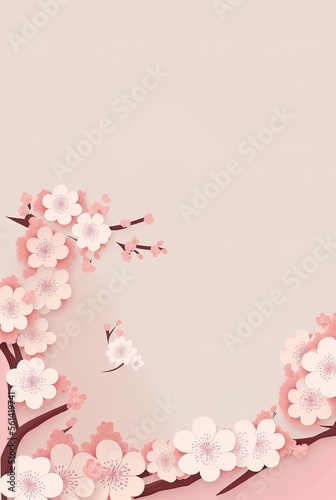 Fototapeta premium Elegant White Space with a touch of Pink Cherry Blossom - Perfect for Text or...