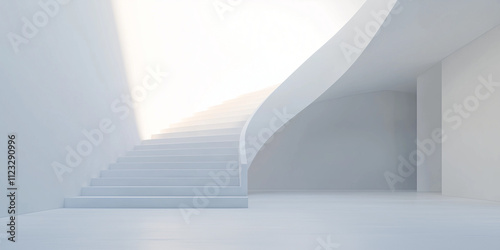 Obraz premium Elegant White Stairway Ascending Into a Bright Skyward Horizon, summer...