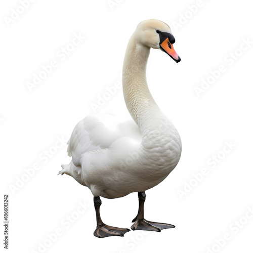 Obraz premium Elegant White Swan Standing, Beautiful Water Bird Background Removal