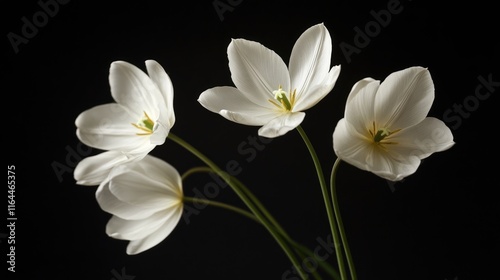 Fototapeta premium Elegant white tulip flowers gracefully arranged against a dark background showcasing their delicate beauty and seasonal charm