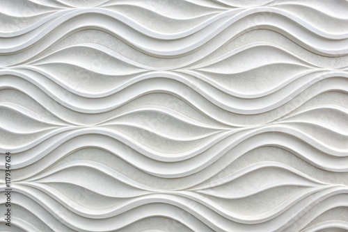 © Yuwadee, Fototapeta premium Elegant White Wave Pattern Wall Decor Modern Architectural Design