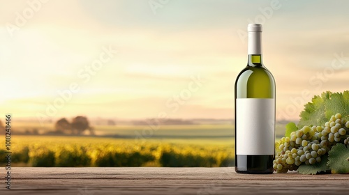 Fototapeta premium Elegant White Wine Bottle with Grapes at Sunset
