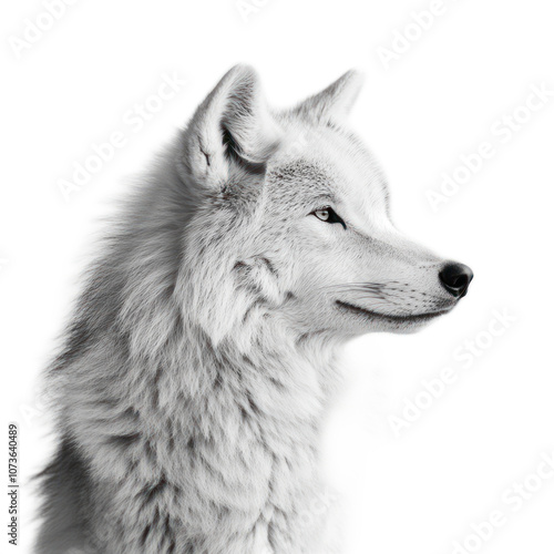 Naklejka premium Elegant White Wolf Profile Against Dark Background