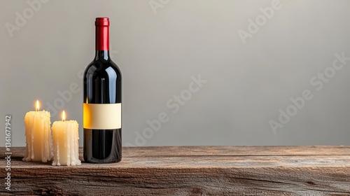 Fototapeta premium Elegant wine bottle on a rustic wooden table with soft candlelight creating a...