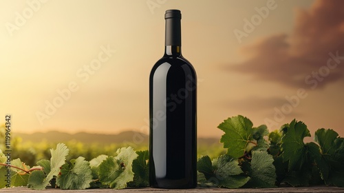 Fototapeta premium Elegant Wine Mockup in Vineyard at Sunset Advertising Visuals for Marketing Ideas