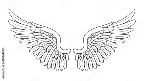 Obraz premium Elegant Wing Illustration Black and White Line Art Featuring Feathers for...