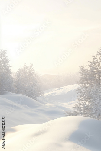 Fototapeta premium Elegant Winter Snow Landscape with Soft Beige Sky
