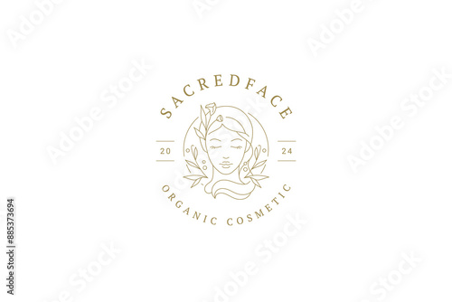© provectors, Fototapeta premium Elegant woman head with wildflower circle outline logo design template vector illustration