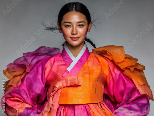 © Sung Hwan Kim, Fototapeta premium elegant woman in soft peach hanbok