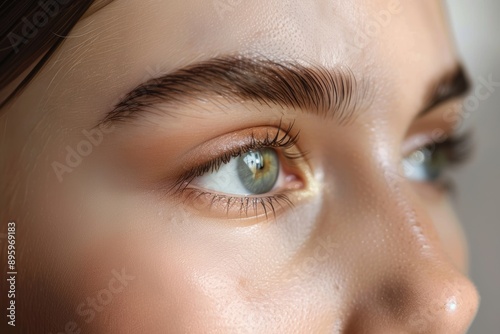 © Наталья Добровольска, Fototapeta premium elegant woman showcasing perfect eyebrow lamination, exuding confidence and beauty