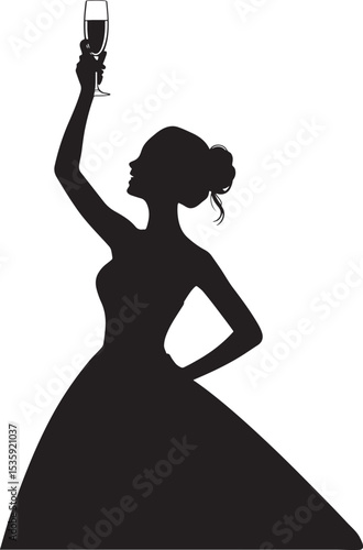 © MDSHOFIQUL, Fototapeta premium Elegant woman silhouetted raising champagne glass celebrating an occasion in black and white