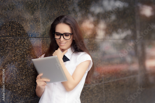 Fototapeta premium Elegant Woman Wearing Glasses with PC Tablet