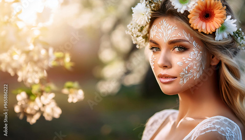 © Matthias, Obraz premium Elegant Woman with Floral Face Paint
