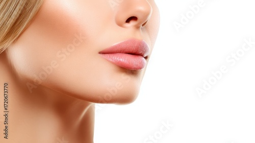 Fototapeta premium Elegant woman with vibrant pink lipstick, a captivating portrait on white...