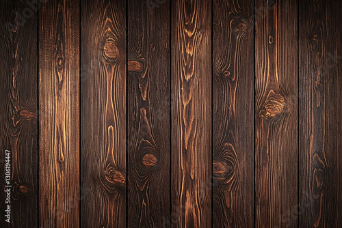 Fototapeta premium Elegant Wood Plank Texture Rustic Warm Brown Backdrop Surface Panel Lumber Grain Knots Dark Tones