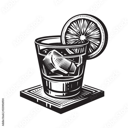 Fototapeta premium Elegant woodcut illustration of a refreshing old fashioned cocktail drink