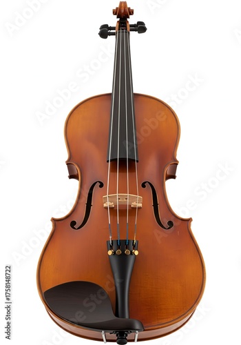 Fototapeta premium Elegant Wooden Acoustic Violin with Black Fingerboard and Strings on White...