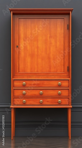 Fototapeta premium Elegant Wooden Mid-Century Modern Cabinet with Drawers and Doors