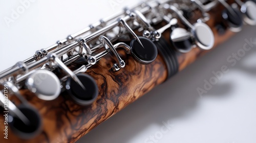 Fototapeta premium Elegant Wooden Oboe with Silver Keys and Details