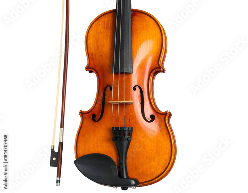 © Owner, Fototapeta premium Elegant wooden stringed instrument with bow