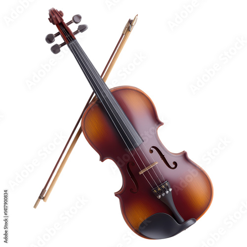Fototapeta premium Elegant Wooden Violin with Bow and Crossed Position Background, isolated on transparent background.