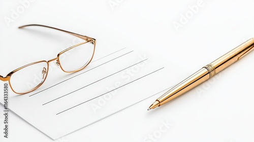 Fototapeta premium Elegant workspace with stylish glasses, a sleek pen, and a blank notepad for...